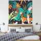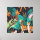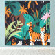 Step into a vibrant jungle scene featuring a majestic tiger family surrounded by lush tropical foliage. Bold colors and striking stripes bring this exotic wildlife art to life.