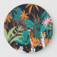 Step into a vibrant jungle scene featuring a majestic tiger family surrounded by lush tropical foliage. Bold colors and striking stripes bring this exotic wildlife art to life.