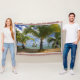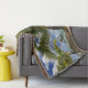 A quality printed throw has its advantages. This is a much finer weave throw than its loopier cousins, and though lighter, it is worth the investment for custom room accessorizing. The back is much prettier than the typical brown, and the fringe on the long sides very vivid, the selvage nicely done. Before photographing, I washed the throw in cold water, delicate, with a thicker woven throw the same size. On tumble dry low, this throw was dry in half the time as the other. This is a very practical quality if you use throws for furniture covers or to wrap up in frequently. The sleekness of the fabric makes it a great layer for accenting or protecting without the feeling of sitting on too much stuff. Perfect for napping or when you feel a light chill coming on. The color printing is beautiful and on this fabric, matched the design and color of my Photoshop image. This is an advantage for blending room fabrics and colors. The fringe on the short sides prints the colors from the design image and therefore varies from the side fringe. I streaked a white fractal line through the plaid pattern to give the illusion of weaving. This printed as crisp as an illusory thread, and put some white in the short side fringe, showing another advantage of print vs loomed- for artistic purposes, line lines, detail, and color integrity can be planned and preserved. My loomed throws have color limitations and more of a needlepoint texture. Print throws reproduce an exact image. The throw felt a little stiff straight out of the package, but this went away in the first delicate wash. Of course I searched the wash water for ink or bleeding and there was none.