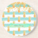 Turquoise Yellow Sandstone Coaster with Pineapple Pattern, faux gold glitter dots. Gives Beach Sea Vibes, perfect for beach house, outdoors, travel gifts. Use personalize this template to change text. More products with this design are in the collection below.