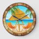 Looking to change out your clocks? This fun tropical clock design with beach chairs, umbrella, table, palm trees, and cocktails on the beach should do the trick. Buy for yourself, or give to family and friends for a fun and timeless gift.