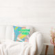 Tropical Positive Vibes Pastel Colours Palm Trees Leaves Throw Pillow / Cushion to add to your home / office / business décor collection. A cool present / gift idea for all who love custom design unique items, positive vibes, nature, holidays, floral theme etc. Sunny, Happy, Love. Each side is different.