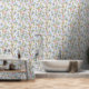 Uta Naumann's blue vintage chinoiserie Marie Antoinette-style pattern for Zazzle Wallpaper showcases flying doves adorned with delicate ribbons, perched on climbing branches surrounded by a profusion of exotic flowers. The design exudes a luxurious, elegant, and feminine Rococo charm with its intricate details and romantic color palette. Ideal for creating a statement wall in a living room, bedroom, or a sophisticated powder room, this wallpaper adds a touch of regal opulence and artistic beauty to any interior space.