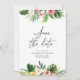 Beautiful modern Tropical watercolor floral save the date. Beautiful script text. Part of a summer wedding celebration collection.