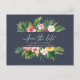 Tropical watercolor foliage script save the date announcement postcard