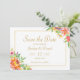 Modern, bright and fresh tropical flower themed wedding Save the Date with modern and script typography, gold frame and gorgeous botanical watercolor greenery. Change of background color possible under “customize further”.Matching items available in the Collection "Tropical Floral Wedding" collection.
