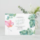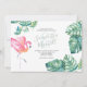 Are you planing a baby shower and wondering where to buy invitations? This summer invitation features your names set in a stylish handwritten script typography with event details in a classic charcoal grey serif font on a crisp white background with a boarder of my original watercolor pink flamingo and monstera palm leaves in shades of blues, greens and turquoise. The invite card reverses to a complimentary tropical turquoise green color. A botanical yet elegant choice for casual beach, Florida Keys, Caribbean and coastal bridal showers, couple showers and co ed baby showers. To see my entire wedding stationery suite visit DoTellABelle on Zazzle.
