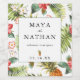 Personalized wine labels are perfect for adding a unique custom touch to your table wine, wedding favors or welcome gifts. Classy elegant design for spring or summer weddings features watercolor tropical pattern of red flower, palm leaf and pineapple. your names, wedding date and wine varietal or custom message in elegant lettering. Designed to coordinate with our Tropical Pattern suite.