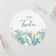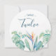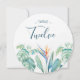 Chic tropical wedding table numbers features a bottom border of watercolor florals with lush botanical foliage and greenery in a unique round card. Personalize with your table number in modern hand lettered script and traditional sans serif lettering. Perfect for garden, summer, destination or beach weddings. To see more designs like this visit www.zazzle.com/vginvites