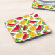 Tropical Watermelon and Pineapple Pixel Pattern Beverage Coaster