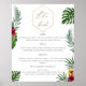 Wedding bar menu with gold & tropical design, greeenery tropical leaves.