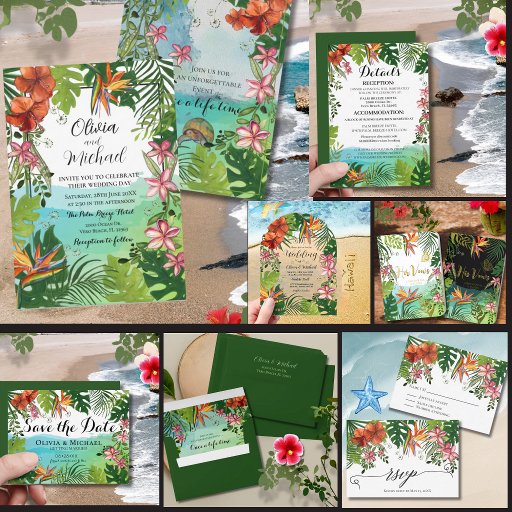Tropical Vibrant Watercolor Hand Drawn Wedding SetDesigned by Adriana Kurucova