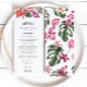 Celebrate your love and escape to paradise with these Tropical Wedding Menus. Perfect for beach and coastal destination weddings, these wedding menus are filled with elegant and modern touches, romantic florals, and vibrant colors. The stunning watercolor artwork includes green palm and monstera leaves, bright magenta and fuchsia orchids, and blush pink hibiscus flowers. Find matching items in the Colorful Tropical Floral Wedding Collection.
