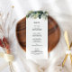 Enhance your reception with this tropical-themed menu card, adorned with lush green leaves and botanical details. Perfect for a destination wedding, this menu card is customizable to display your selected dishes and courses, bringing a touch of tropical elegance to every table.