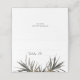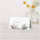 These folded place cards feature watercolor palm tree branches on the front and a tropical plant pattern on the under side of the card.