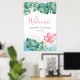 Tropical Watercolor Wedding Reception Welcome Sign was designed to match my Florida stationery collection. This tropical chic hand letter style sign lets guests know they have arrived to your wedding reception. The design uses a replica of my original watercolor monstera palm leaves and pink flamingo with an ocean shoreline. Personalize with custom text in calligraphy script hand lettering typography (shown with "Welcome") in a vibrant pink color. Perfect for wedding receptions, bridal showers, simple baby showers, birthday parties, 50th wedding anniversaries and couples showers. To see the modern tropical wedding decor and papers visit www.zazzle.com/dotellabelle