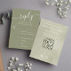 Start with our Tropical Beach Wedding Invitation and complete your matching set. Easily collect responses with this editable tropical wedding RSVP card designed for beach and destination celebrations. Featuring elegant palm leaves and fresh greenery, this response card includes meal choice options and a convenient QR code so guests can quickly reply and visit your wedding website.