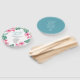 This tropical themed wedding program fan is designed using my original hand painted watercolor hibiscus flower and monstera palm leaves in shades of pink, orange, turquoise, blue and green on a crisp white background in a unique circle format. The bride and grooms names and island wedding program timeline are set in hand lettered script and sans serif typography in a turquoise blue. This double sided botanical floral and greenery design is a beach wedding style choice for Caribbean, luau, Hawaiian, Summer, destination and Florida weddings. Designed by Victoria of Do Tell a Belle. To see more from this pink hibiscus flower wedding theme visit https://www.zazzle.com/collections/pink_hibiscus_flower-119064582807479077