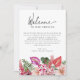 Celebrate your love and escape to paradise with this Tropical Wedding Welcome Letter. Perfect for beach and coastal destination weddings, this wedding invitation is filled with elegant and modern touches, romantic florals, and vibrant colors. The stunning watercolor artwork includes green palm and monstera leaves, bright magenta and fuchsia orchids, and blush pink hibiscus flowers. Find matching items in the Colorful Tropical Floral Wedding Collection.