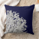 Tropical White Sea Coral on Navy Blue Beach Throw Pillow