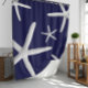 Tropical White Starfish on Navy Blue Beach Shower Curtain