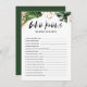 Who knows the bride to be best? Add this fun and playful card to your bridal shower. It features tropical leaves with faux gold foil tropical accents. Personalize by adding a name and event on the back of the card. This greenery bridal shower guessing game card is perfect for summer and tropical theme bridal showers.
