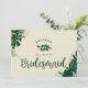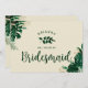 Tropical Foliage Modern Greenery and Leaves Border Personalized Will You Be My Bridesmaid Proposal cards. Perfect for your tropical themed wedding stationery. In a bold color palette of rich greens, emerald, and gold foil look. This design is perfect for a beach, destination, or summer wedding. With feelings of a tropical paradise, this vivid palm leaf design will compliment your beach or tropical wedding venue. In a dark green, teal, emerald, greenery, and gold color scheme - Will You Be My Bridesmaid Proposal cards.