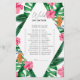 Tropical Palms Watercolor Bridal shower invitation. Design features an watercolor elegant bouquet of classic beach watercolor greenery and flowers, including blush pink hibiscus, orange and blue bird of paradise, green greenery and dark green palm leaf.