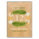 The design features a tropical wreath of palm leaves, seashells & starfish on a sandy background with color coordinated wording.