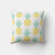 Tropical style pillow design features a pattern of vibrant yellow and minty seafoam blue / green pineapples.