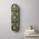 This cool tropical banana skate deck features hand drawn illustration of yellow banana bunches and tropical green banana leaves against an almost black background with subtle raindrop detailing in dark gray.
