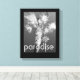 tropics stretched canvas wall art palm tree photo black and white photograph with text paradise for decor in home or office. Original art and photography by Ann Powell on canvas and wall art. Photography copyright Ann Powll all rights reserved.
