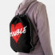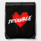Bold. Raw. Unapologetic. This **drawstring backpack** features a **bright red heart dripping with attitude** and the word **“Trouble”** stamped across in **striking white letters**. It's the perfect grab-and-go bag for those who wear their heart (and chaos) out loud.