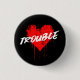 Small but fierce. This bold pin-back button features a bright red, dripping heart with the word “Trouble” splashed across the front in **striking white letters**. It's the perfect accent for your jacket, backpack, or anywhere you want to stir a little rebellion.