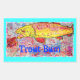 shows colourful rainbow trout chasing a fly with a screen print look! also with "Trout Bum" slogan