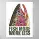 - - - - - - - - - - - - - - - - - - - - - - - - - - - - - - - - - - - - - - - - - - - - - - - - - - - - - - - - - FISH MORE, WORK LESS. Giant rainbow trout fish head with saying. For the fishing obsessed fisherman, fisherwoman who understands time on the water is better than time at work! This trout art is from an original watercolor painting by Mr. Trout Whiskers, Doug Shultz. Great gift for your favorite fisherman or icthyologist. Shop TroutWhiskers for other unique fishing gear. - - - - - - - - - - - - - - - - - - - - - - - - - - - - - - - - - - - - - - - - - - - - - - - - - - - - - - - - - Shop the TroutWhiskers store online for other unique fishing accessories custom printed with art, designs, graphics, pictures and sayings on: … short sleeve, raglan and long sleeve tee shirts; casual, fitted, spaghetti, organic and ringer t-shirts; regular and hooded sweatshirts; hoodies; creepers, … large and small tote bags for grocery shopping, books, kids toys, beach stuff or use to store or carry fishing tackle, lures, flies, accessories on a fishing adventure … commuter, messenger and courier bags - perfect as a workday bag commuter, overnight attaché, with add-on pockets and straps, or use as a travel bag for storing or carrying books, fly boxes, rods, reels and miscellaneous equipment for a fishing trip or other travel … square and round mini, large and big huge buttons for clothing, caps, hats … square, round and flexible magnets for refrigerator, file cabinet, boats, tackle boxes … neckties to wear anywhere … bumper stickers for cars, trucks, boats … greeting cards, note cards, postcards and postage stamps … stationery, letterheads with matching envelopes, business cards and labels for company, personal or business use … 3 ring binders for pictures and photographs or fly tying recipes … notepads, memo pads and notebooks for keeping a journal, diary, log, record or use for drawings, sketches, illustrations … dishwasher and microwave safe ceramic and glass mugs for coffee, espresso, tea and more … beer steins for display on mantle or shelf or for party and celebrating … stainless steel travel and commuter mugs … recycled aluminum and 100% BPA free Liberty Bottleworks water bottles … porcelain tea pots, pitchers and jars for candy, snacks and treats … ceramic tile, sandstone and cork coasters for your house or office … tshirts and cermaic food and water bowls for your cat, dog or other pets … wood trinket, keepsake and gift boxes to hold jewelry, coins, collectibles and are great for fly tying materials … jigsaw puzzles, with and without a storage tin, and display plaques … MoJo brand dinner and cocktail party napkins, placemats, towels and pillows … art, posters and prints on regular or archival paper or canvas, with or without frames, for your home, company, store or shop … gel mousepads and cloth mouse pads for home, school, office … cases, sleeves and portable Doodle speakers for a cell phone, ipad, ipod, iphone or laptop computer and other electronic devices … folio for smartphones, journals, notebooks or planners … ornaments for Christmas, Hanukkah and other holidays for your tree, home décor, car hang tags, the uses are endless. Some designs are serious art, some are humorous and funny - all are one of a kind. Custom fishing gifts for everyone - men, women, boys, girls, kids, children, baby, infants, teens, brother, sister, dad, father, mom, mother, grandpa, granddad, grandfather, grandma, grandmother and friends, too! - - - - - - - - - - - - - - - - - - - - - - - - - - - - - - - - - - - - - - - - - - - - - - - - - - - - - - - - - Items in the store come in many different colors including white, black, grey, gray, brown, tan, red, orange, yellow, green, blue, purple, pink and lots of shades in-between. All items can be customized with your own text or personalized with a name - just click on the “Customize It” button. - - - - - - - - - - - - - - - - - - - - - - - - - - - - - - - - - - - - - - - - - - - - - - - - - - - - - - - - -