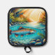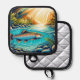 Trout in Crystal Clear River Beneath Lush Forest Pot Holder