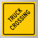 International style road and highway warning sign advising of truck activity. Available in words or picture version.