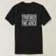 My 11 yo wore adult XL (5’7” 165#). The 8yo is small framed. She wore adult small and tied it in the back. Grandma wore adult large with long sleeve shirt underneath. Tall girl adult medium. Dark haired male adult large. Good quality dark Heather gray, Gildan brand shirt. -it was next up from basic choice and cost about $20 per shirt. Not too thick or thin. Washed and dried well, no major shrinkage. Not see-through. Can wear a bra under it fine. Screen print is just as shown and well done, front and back.