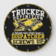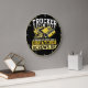 This humorous wall clock provides a witty 'definition' of a truck driver's crucial role. Against a black background with a yellow rim, it features a yellow semi-truck graphic and the bold text: "TRUCKER DEFINITION A PERSON WHO FIXES WHAT A DISPATCHER SCREWS UP". It's a perfect, lighthearted gift for any trucker who often finds themselves solving problems on the road. The design tool can also be used to add custom text if you want your name or company on this clock. You can customize the color of the frame to any color you desire by going into the design tool.