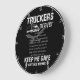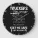 This poignant wall clock features a heartfelt "Trucker's Prayer" for safety on the road. Against a black background with a white rim, it displays a semi-truck silhouette and text asking for guidance, family connection, and protection while driving alone. It concludes with the powerful plea: "KEEP ME SAFE GET ME HOME". This clock is a meaningful gift for any truck driver. The design tool can also be used to add custom text if you want your name or company on this clock. You can customize the color of the frame to any color you desire by going into the design tool.