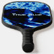 An edgy abstract of shades of Blue in midnight, navy and bright sky blue is what makes this Pickleball paddle truly unique. If Blue is a favorite color, this paddle is sure to be a hit and favorite too. Personalize with a Name and Initials on each side.