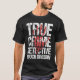 My 11 yo wore adult XL (5’7” 165#). The 8yo is small framed. She wore adult small and tied it in the back. Grandma wore adult large with long sleeve shirt underneath. Tall girl adult medium. Dark haired male adult large. Good quality dark Heather gray, Gildan brand shirt. -it was next up from basic choice and cost about $20 per shirt. Not too thick or thin. Washed and dried well, no major shrinkage. Not see-through. Can wear a bra under it fine. Screen print is just as shown and well done, front and back.