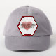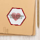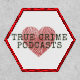 An iron on patch for true crime podcast lovers everywhere, featuring a red fingerprint heart with typewriter style text.