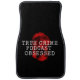Car floor mats for true crime podcast lovers everywhere, featuring a bloody fingerprint with typewriter style "True Crime Podcast Obsessed" text.