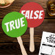 True false game signs fans. True on one side and False on the other. Ideal for quizzes and fun games. Easy to read fun paddles for idea for interactive pop quizzes, pub quizzes and check in questions and fun consensus hand boards.