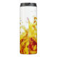 Experience the heat in your hands as you drink from this unique flaming thermal tumbler! This is a yellow, red, orange, black, white, gray and slight purple fire design.