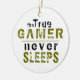 True Gamer Never Sleeps Typography Gamer Ceramic Ornament