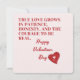 Celebrate the depth of your relationship with this elegant and thoughtful Valentine's Day card. Featuring the beautiful sentiment, "True love grows in patience, honesty, and the courage to be real," this design focuses on the core values of a lasting bond. The clean, minimalist layout uses bold red serif typography against a soft blush background, accented by a charming hand-drawn heart. It’s a perfect choice for those who prefer sincerity and simplicity over flashiness.