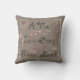 A pretty pillow that the one you love will love receiving, features a gray background with pink hearts, swirls, and flowers and decorative black text that reads A True Love Story Never Ends!